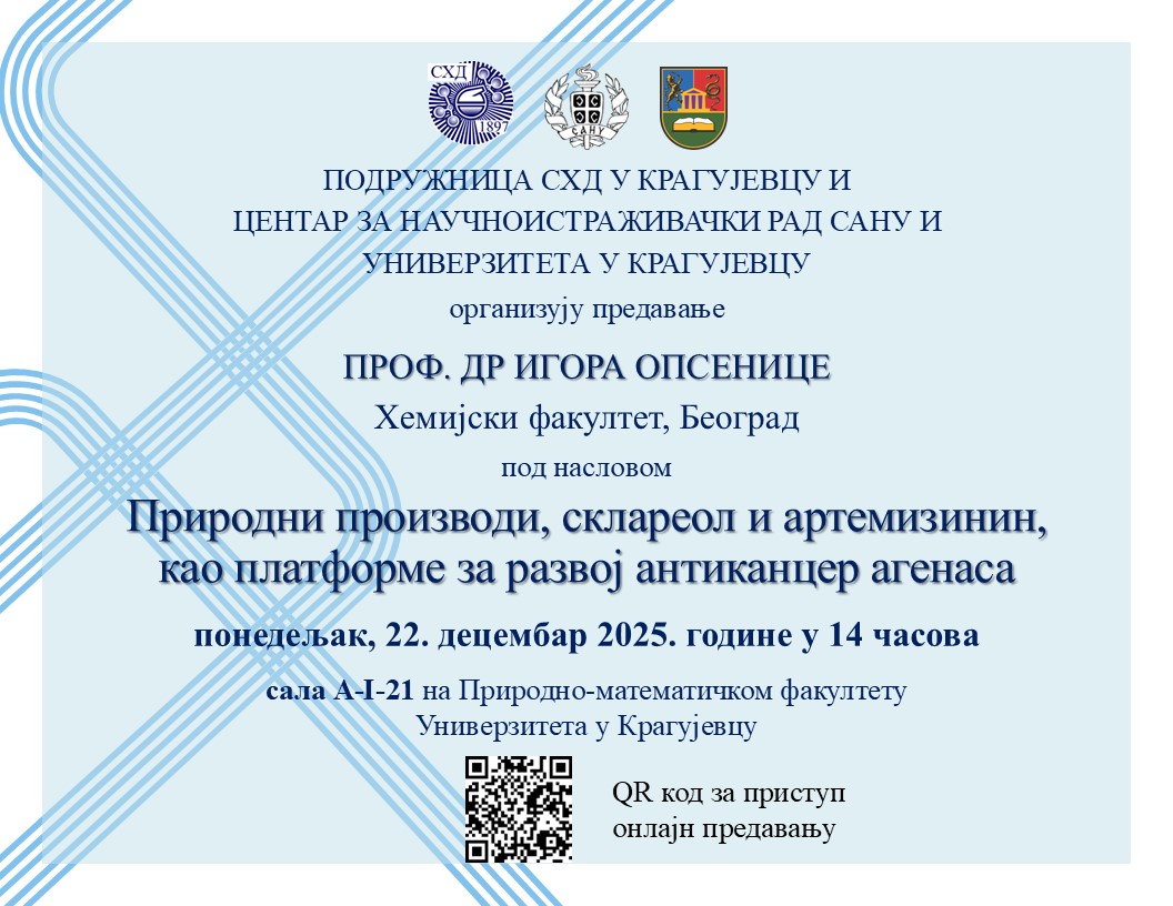 Др Јакоб Кљун одржаће предавање у четвртак, 26. јуна 2025. године у 12 часова у Универзитетској галерији у Крагујевцу.